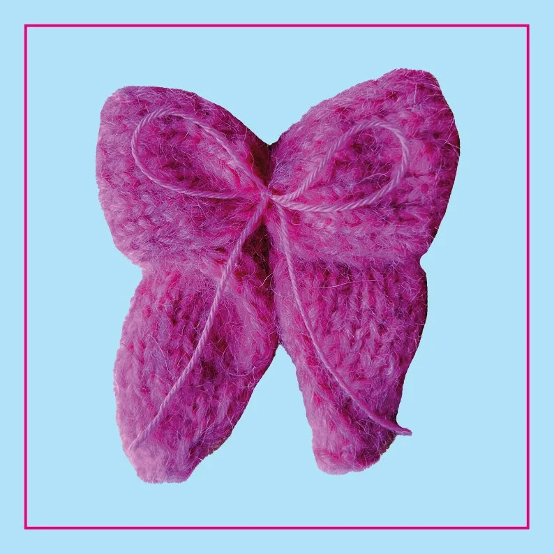 The bow pictured was made using 1 strand Drops Melody held double with 1 strand Filcolana Arwetta and measures 3.75 in (9.5 cm) wide by 4.25 in (10.75 cm) tall. There is no essential gauge for the bow - make it with thin yarn for a subtle accessory or do it on huge needles for an oversized look!