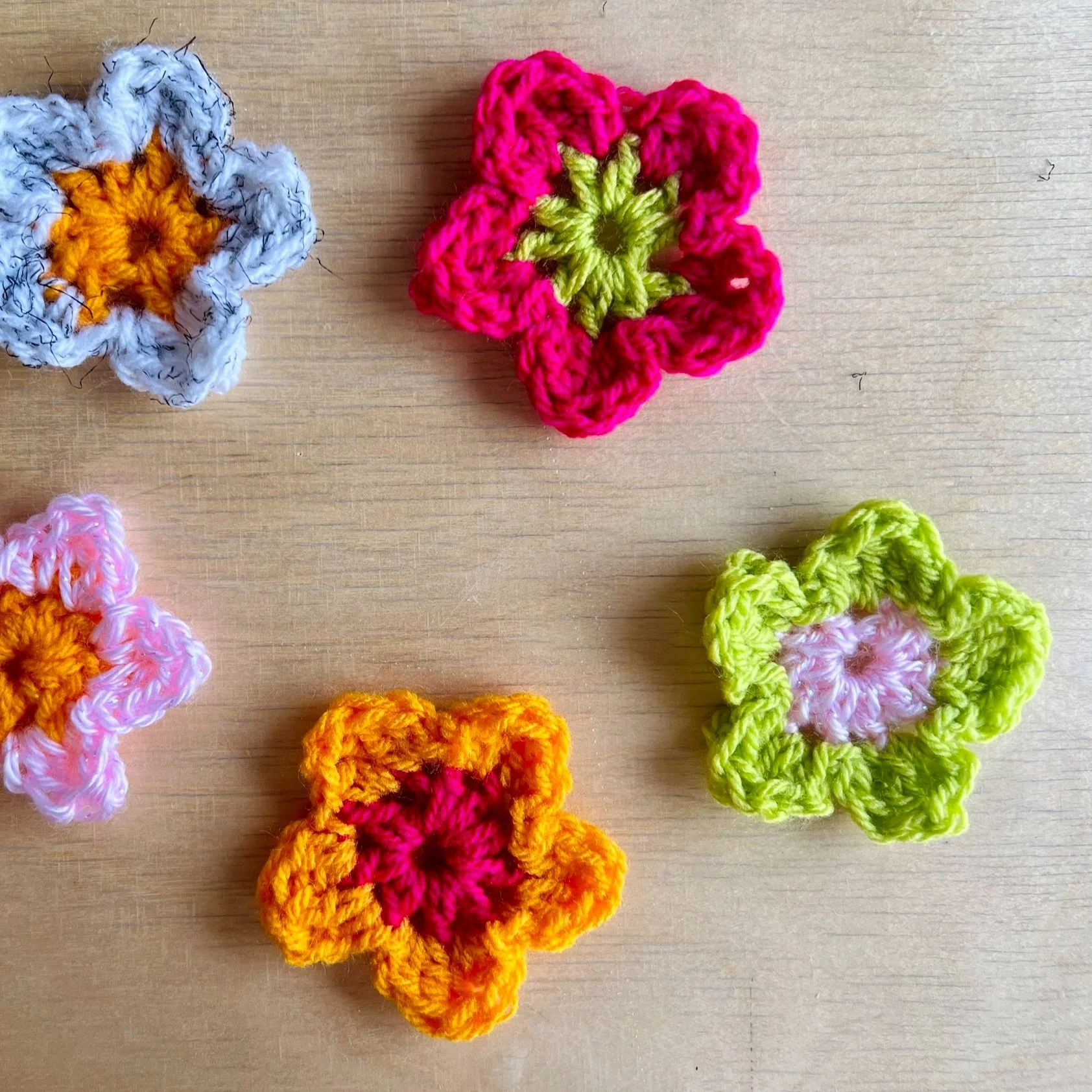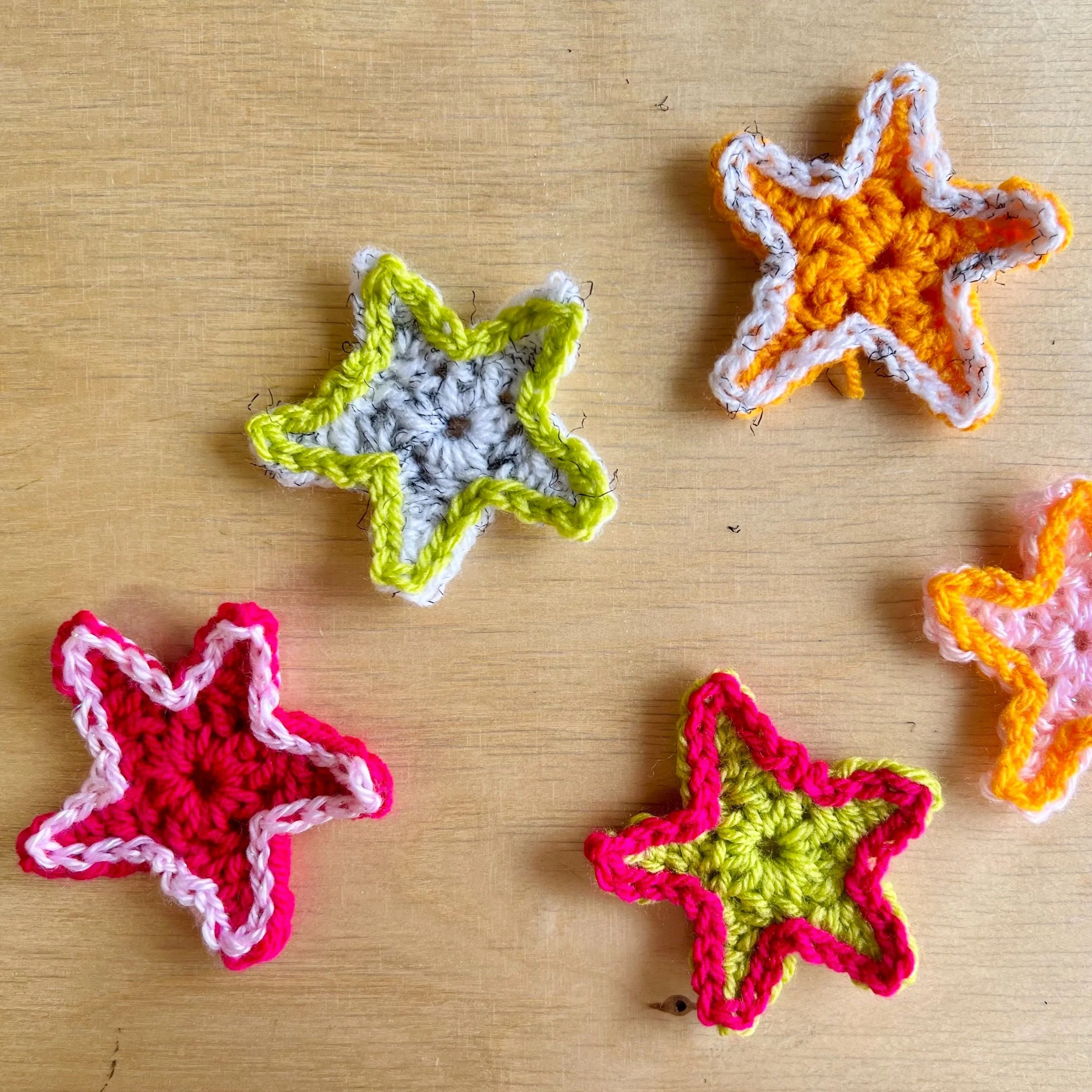 Each notion begins by creating the same loop and then working more rounds of stitches to create a distinct shape. You can make as many pieces as you like and then connect them by stringing them along a piece of yarn.