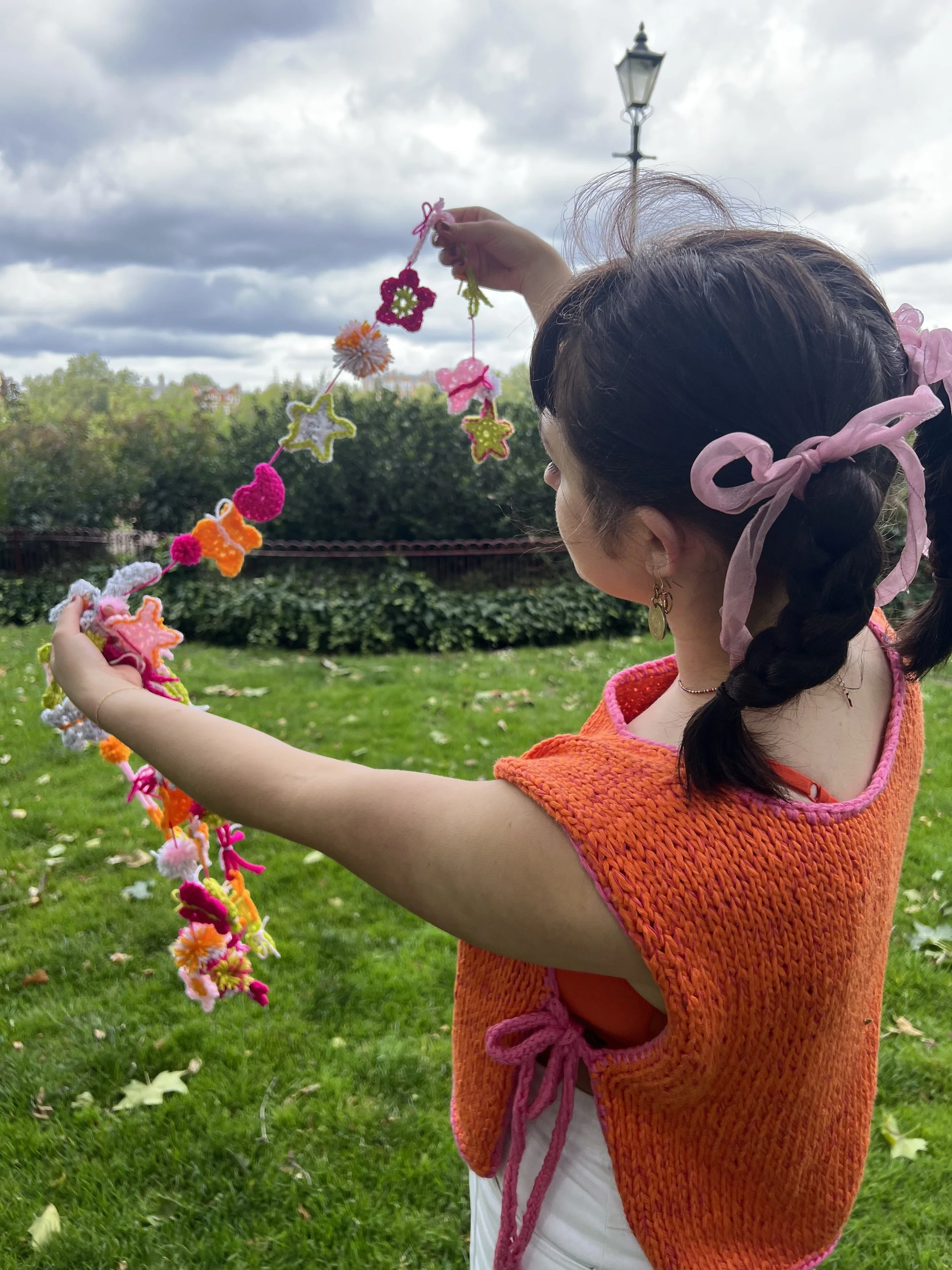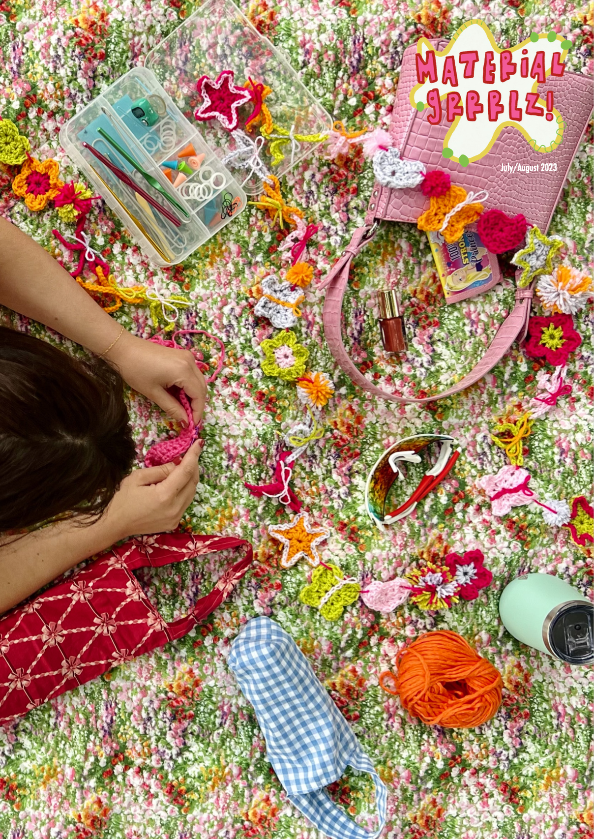 We want to see how else you use these pieces! Attach them to clothing, connect them to create belts and headbands, or dream up something completely crazy! Tag @materialgrrrlz so we can see and credit “the material grrrlz flower” “the material grrrlz star” etc. as the pattern:)